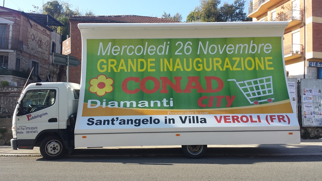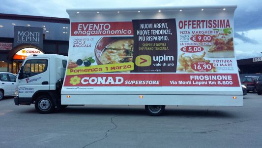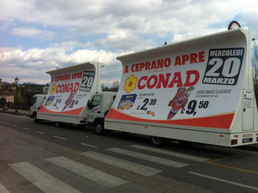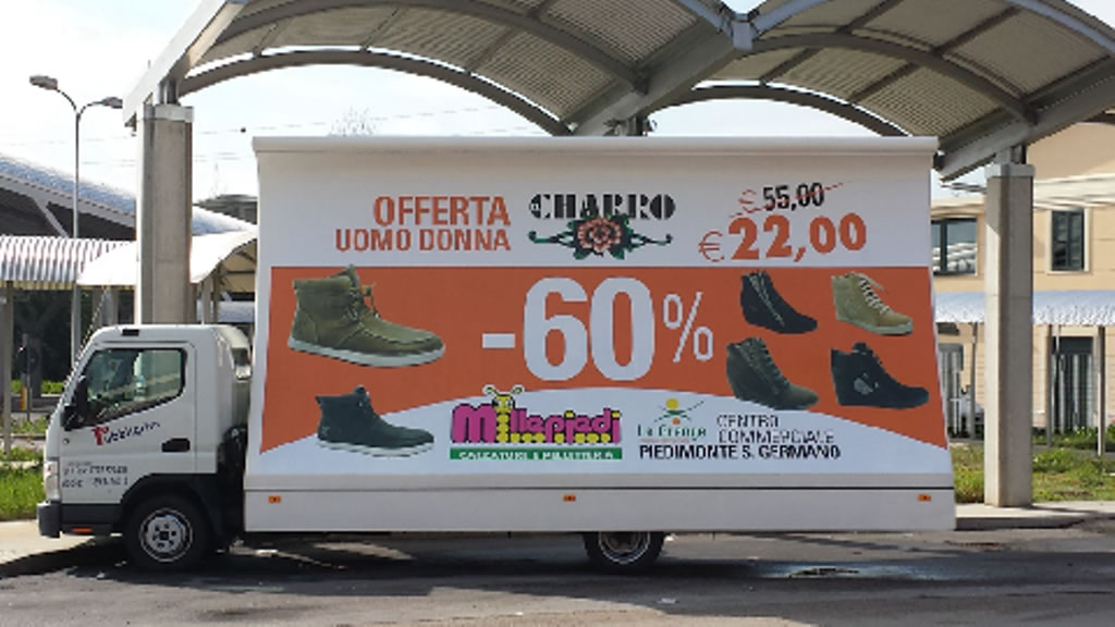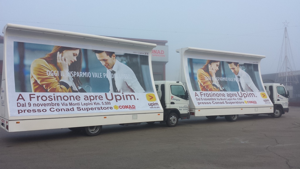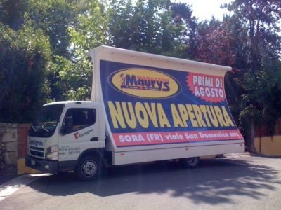 I nostri posterbus (vele itineranti) sono allestiti di impianto pubblicitario da 36 mq (due poster da 300x600cm), illuminati e con pubblicità fonica; con essi saremo presenti in modo logistico presso vie, mercati ed eventuali soste in aree o punti strategici che interessano il cliente per evidenziare al meglio il Vostro messaggio pubblicitario.